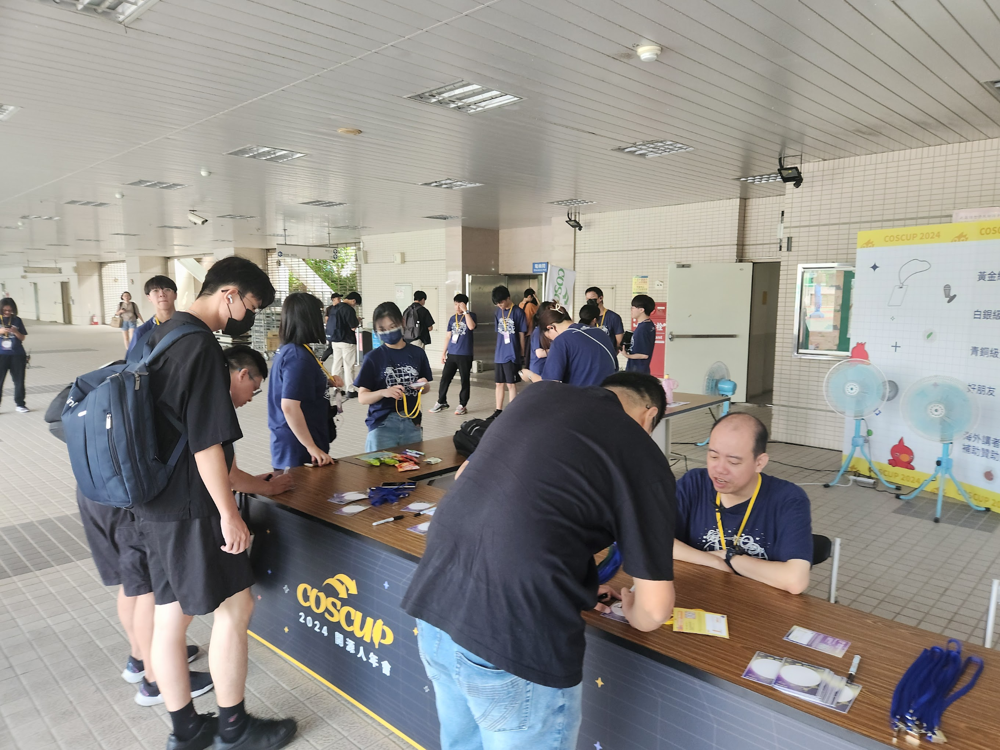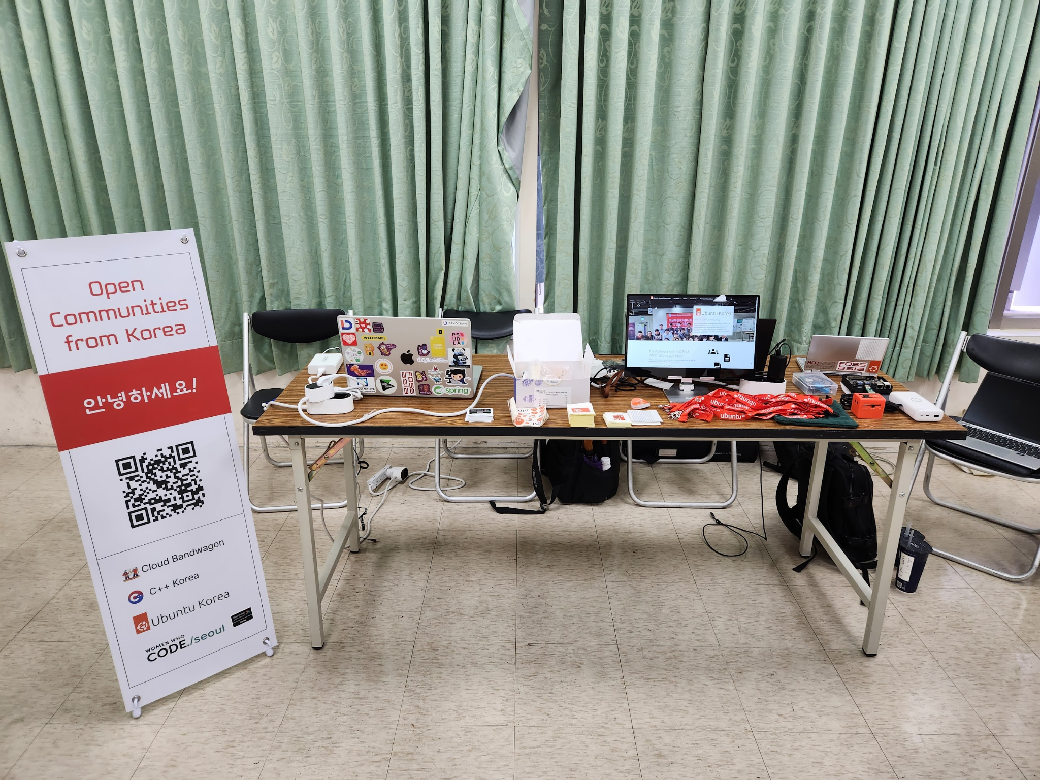 COSCUP 부스의 모습은 생각보다 매우 단순합니다. 부스는 테이블로 제공되고