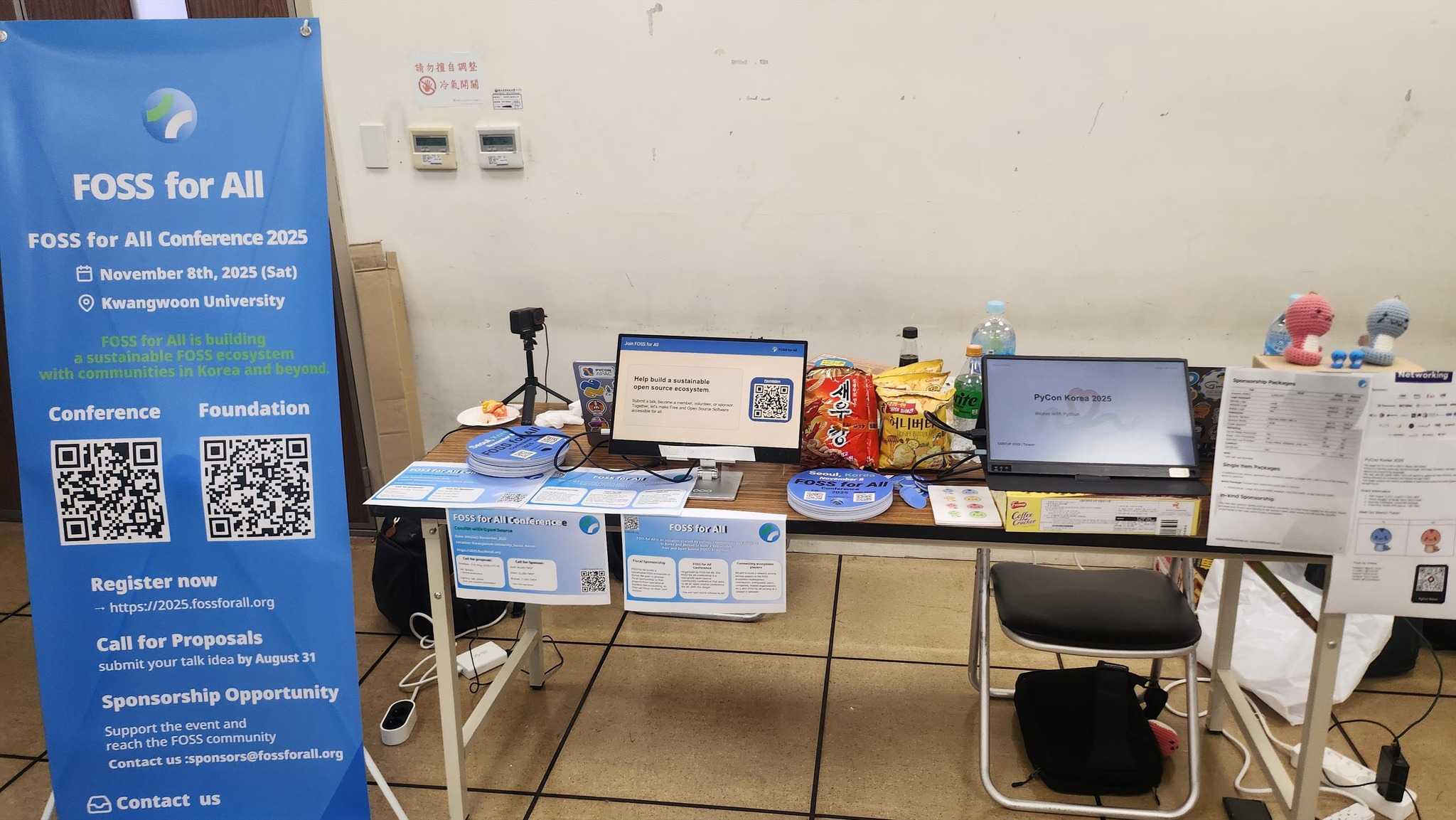 COSCUP에서 FOSS for All이 가장 중점적으로 진행한 활동 중 하나는 오는 11월 8일 광운대학교에서 열릴 예정인 FOSS for All Conference 2025의 홍보였습니다!